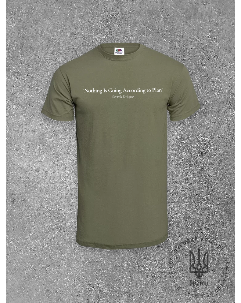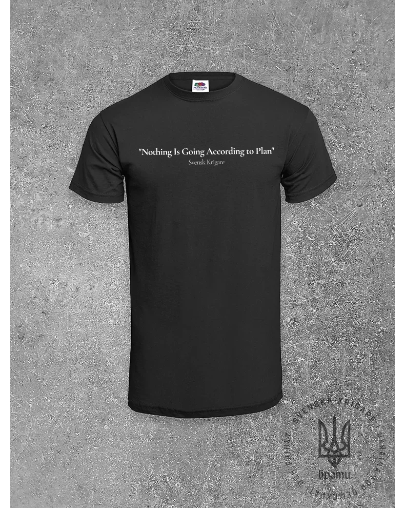 Svart T-shirt med texten ”Nothing is going according to plan” är ett ironiskt svar på Putins uttalande: ”Everything is going according to plan.” Med humor och skärpa visar denna t-shirt att verkligheten är långt ifrån hans narrativ. Bär den som en symbol för motstånd, hopp och solidaritet med de som kämpar för frihet i Ukraina. Ett tydligt ställningstagande som gör intryck både på nära håll och på avstånd.